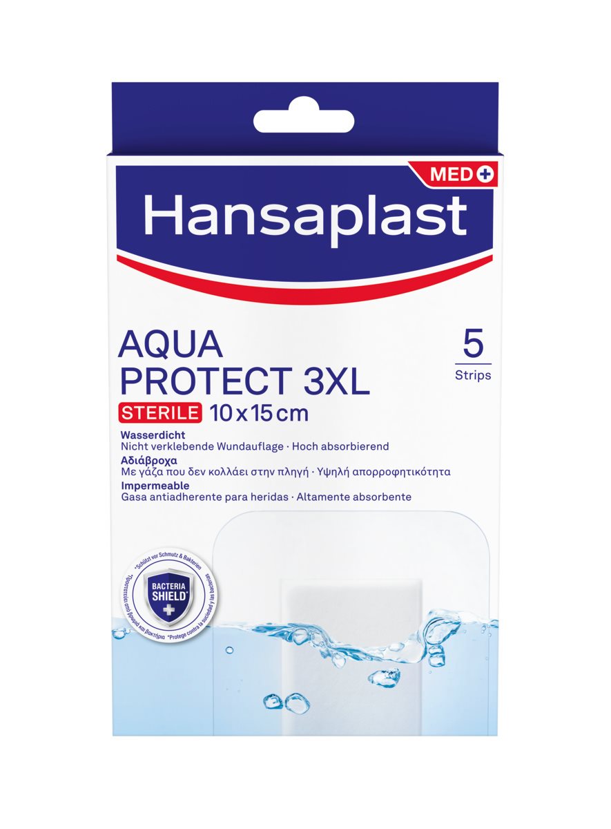 Les pansements Hansaplast Aqua Protect XL/XXL/3XL/4XL sont des pansements stériles pour une protection 100 % étanche des plaies importantes et post-opératoires.